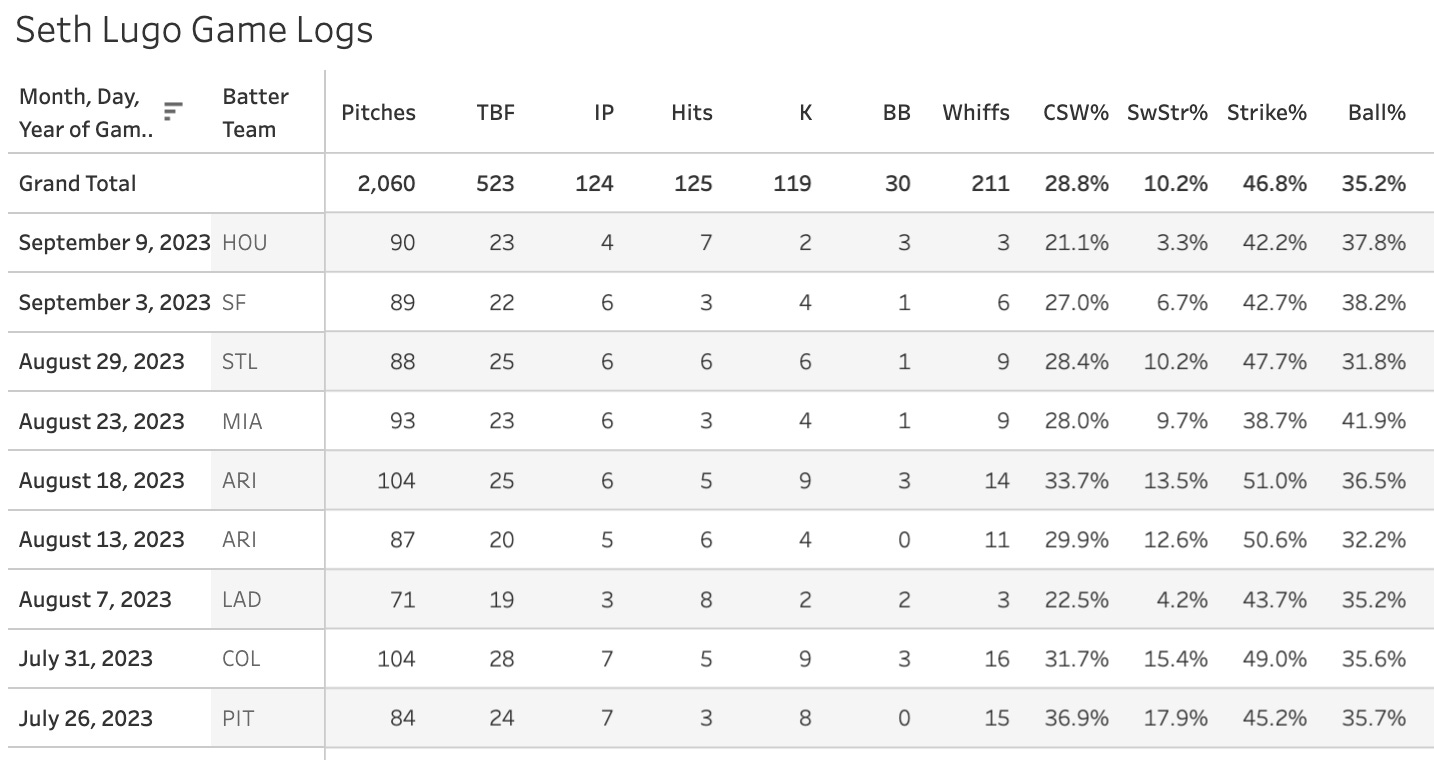Seth Lugo's ST usage (12.2%) up 11.5 points