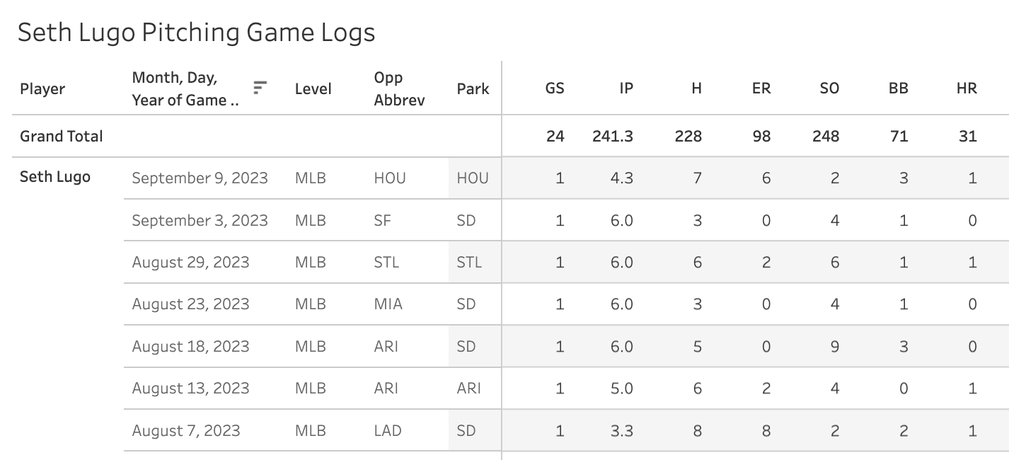 Sawyer Gipson-Long (AAA - DET) 99 IP 23.8% K-BB