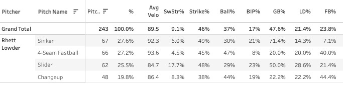 It was good to see him with no walks there after walking four in each of his first two starts. The pitch mix now on the season: