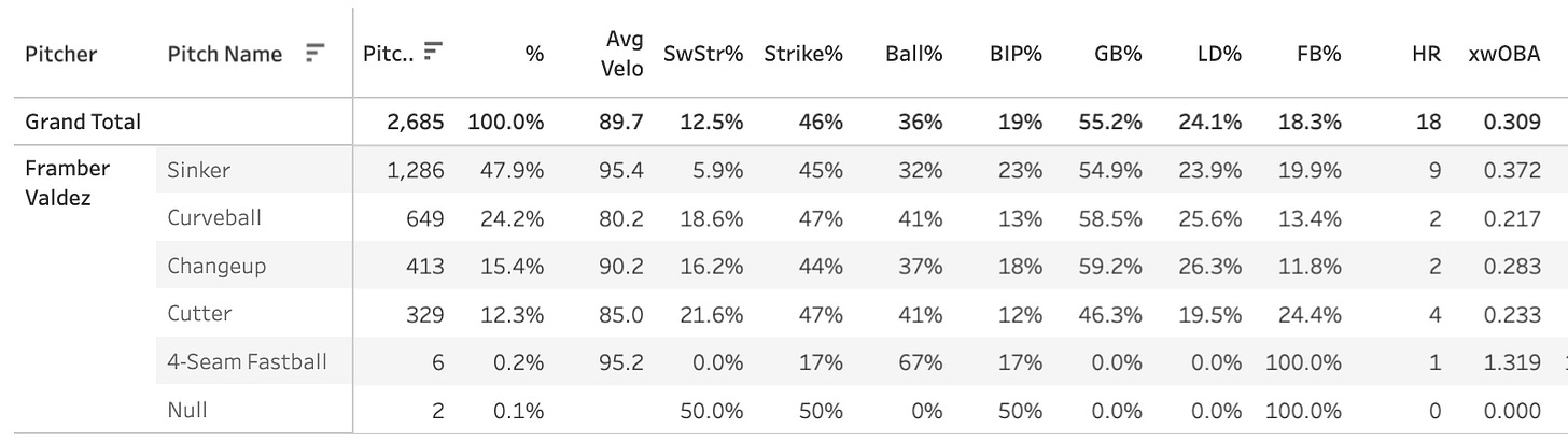 2. Framber Valdez (HOU): 52.1 Strike%, 33.3 Ball%