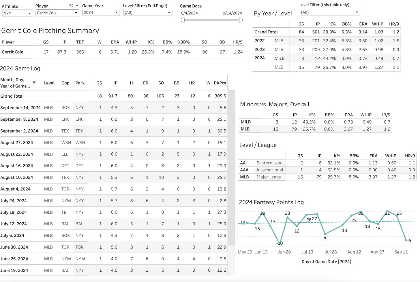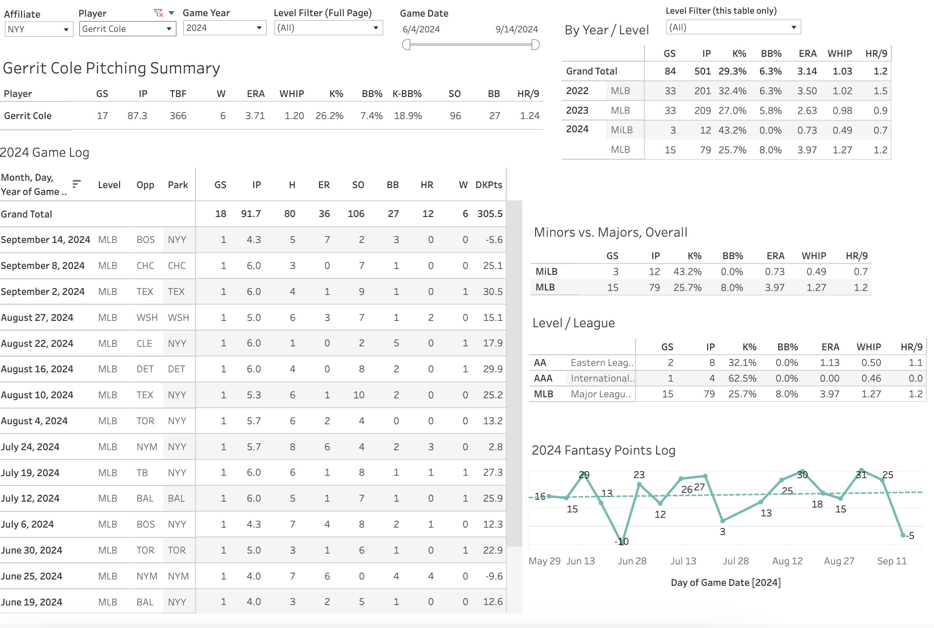 He threw 73 pitches. He’s not very easy to trust as we finish out 2024. He now has just a 22.6% K% on the year but a more encouraging 16% SwStr% and 5.6% BB%.