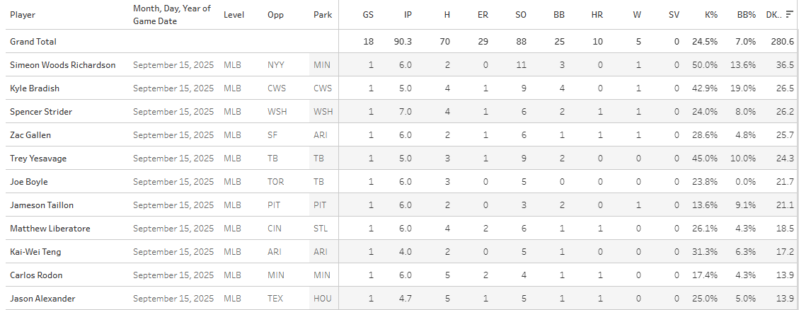 3. Spencer Strider (vs. WSH): 26.15 Points