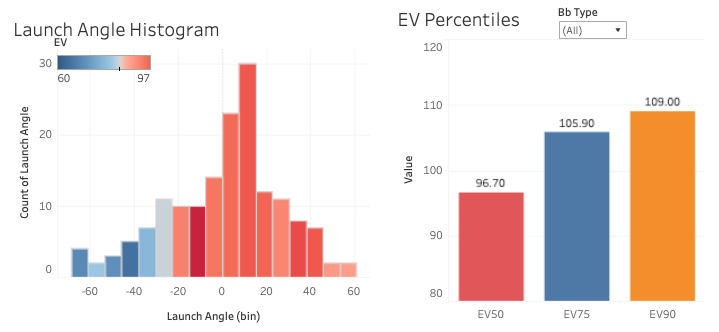 The exit velo is not an issue. The issue is the lack of ability of consistency in the launch angle, and the extremely low pull rate (30% vs. a league average of 37%). He’s hit 27 fly balls (an extremely low number, by the way) with just a 7% pull rate. That’s two. He’s pulled just two fly balls.