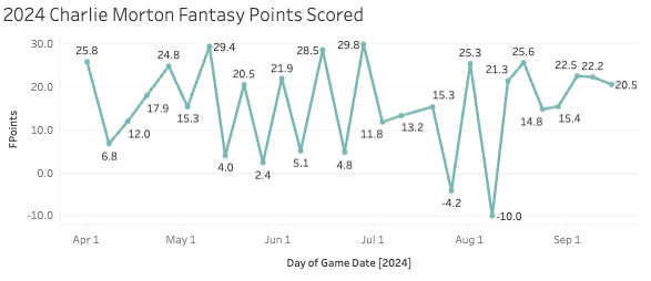 Chourio will be a top-20 pick next year, and I think that’s the appropriate price - so there’s not much to say about him. He’s paid off for those who drafted him this year, even after a slow start.