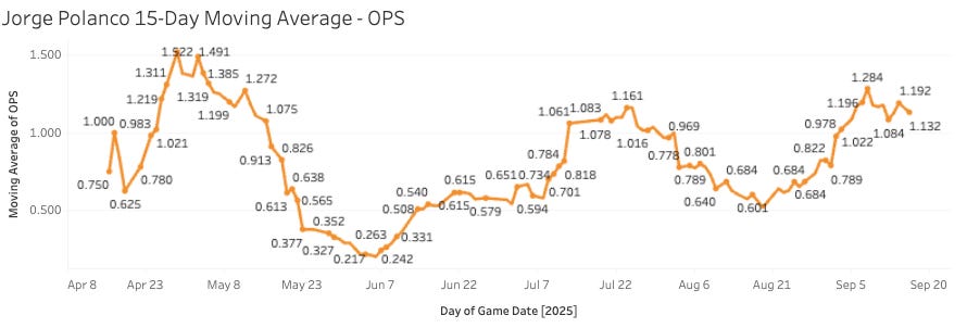 Jorge Polanco is finishing the season how he started it. He has basically had three waves of being good, with two brutal valleys between the peaks.