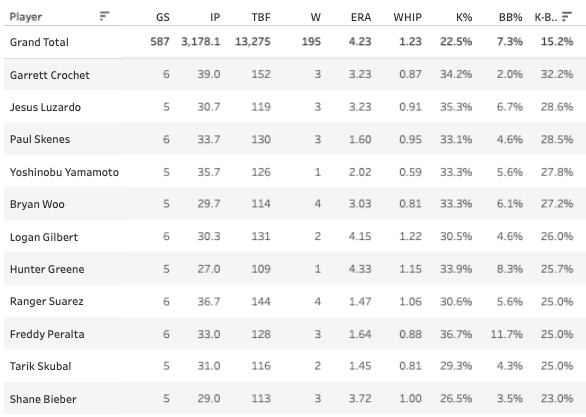 Mick Abel (AAA - MIN) 98 IP 18.5% K-BB