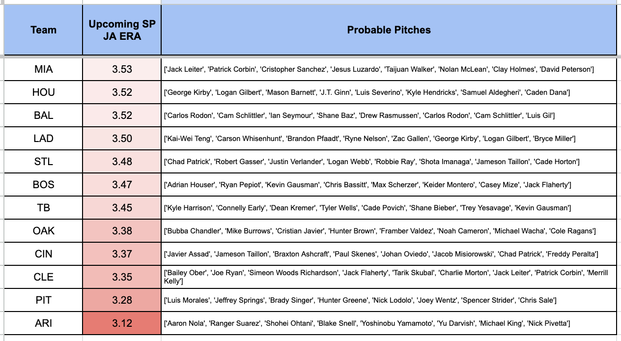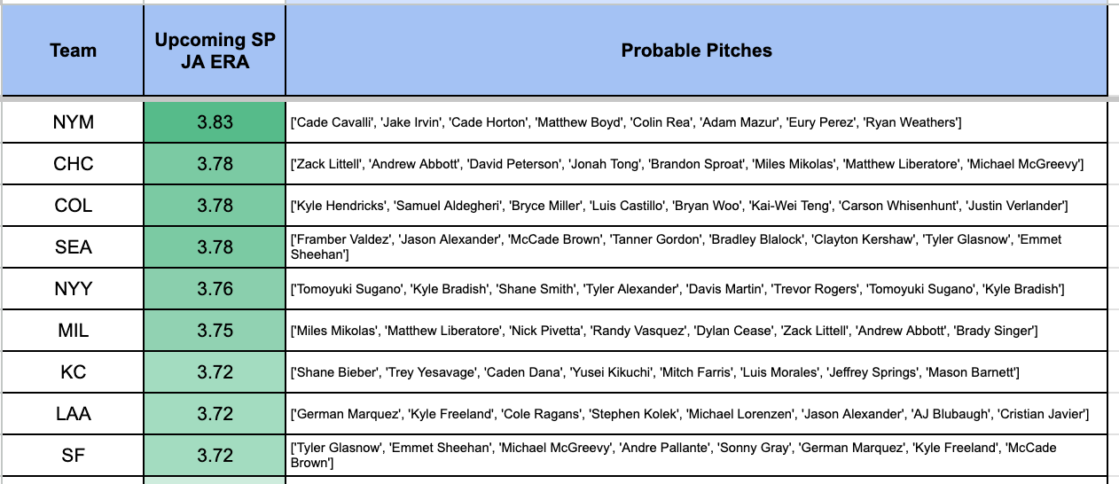 But I have to get going! Here’s a reminder about the Upcoming Hitter Schedules resource! You can access that here. Since we’re within ten days of the end of the season, this just tells you the strength of each team’s full remaining schedule (although the probable pitchers are subject to change).