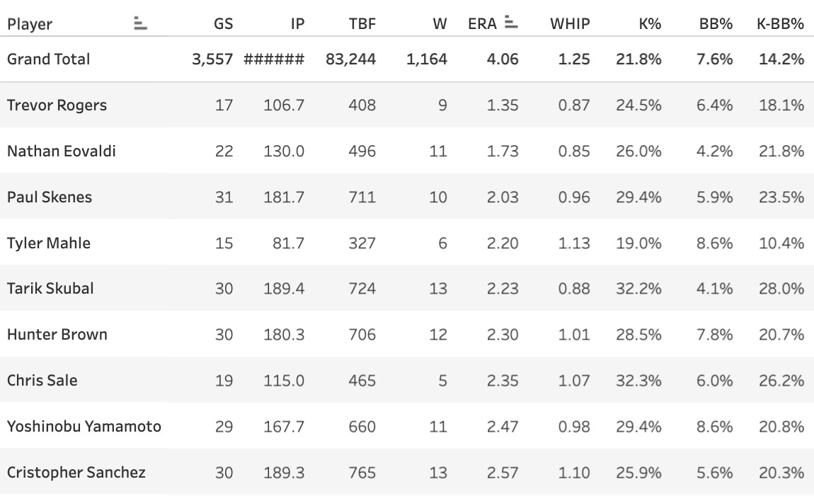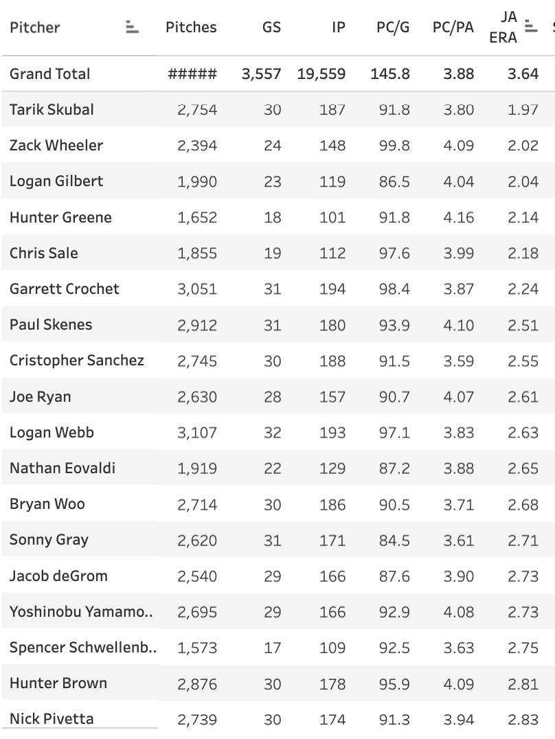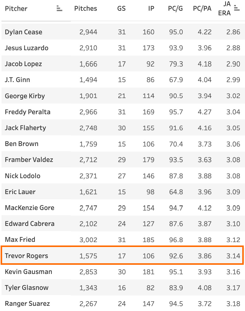So he’s #1 in ERA. But where is he in JA ERA? I know you’re asking! The Tableau shows you 18 names before making you scroll. Rogers isn’t in that top 18!
