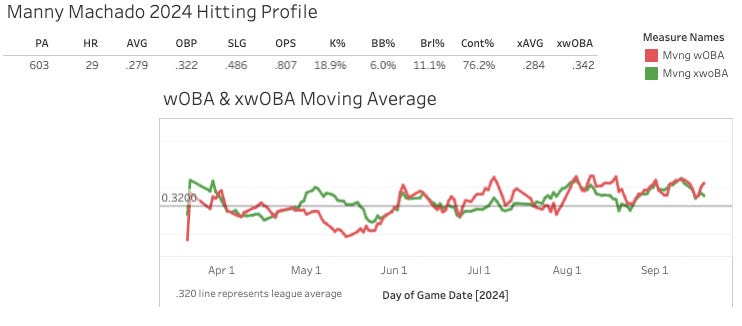 Justin Turner - 0.378 xwOBA, 10.3% Brl%, 79.6% Contact%, 24.6% Chase%, 14.5% K%