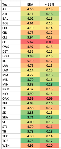 So I am wrong. They have the 10th best ERA and the 9th best K-BB%, so it lines up how you’d expect.