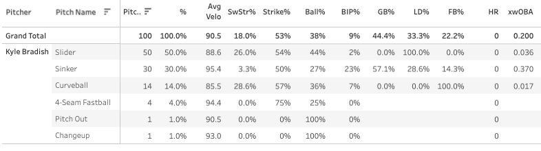 So he’s been going mostly sliders all year, but the 50% usage last night was an outlier. He still doesn’t seem to have a good fastball, and that will hold him back until he improves on it.