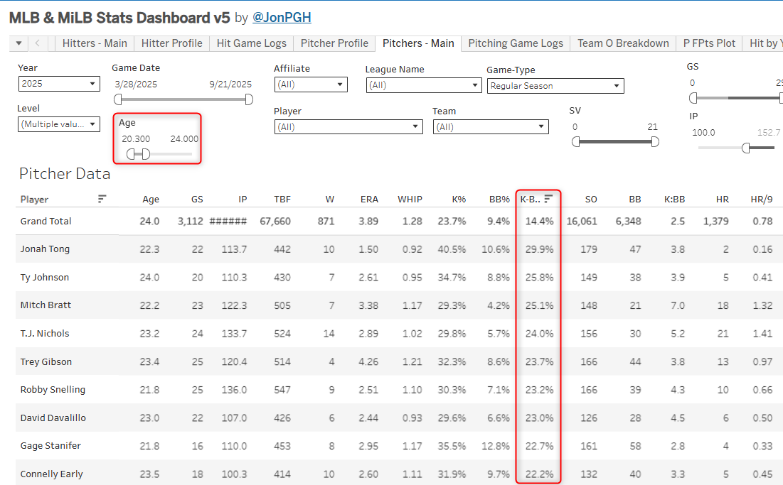 Here are your K-BB% leaders for minor leaguers this year currently under the age of 24.