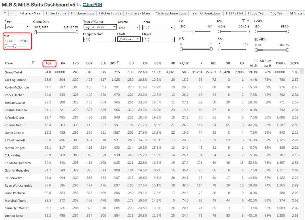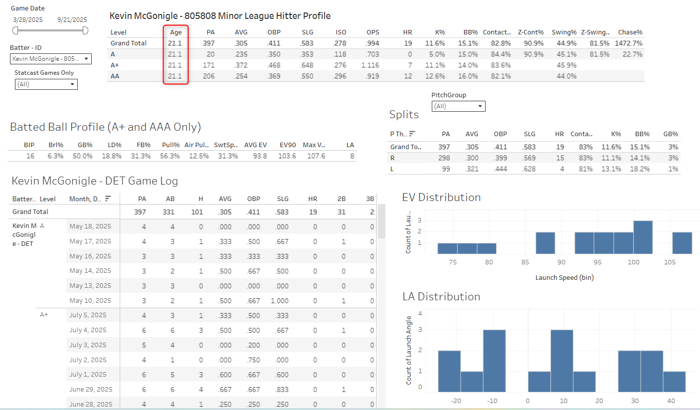 So that made me stop and go do the work to add PLAYER AGE to the minor league tableau dashboards. That’s pretty much a no-brainer that I was no-braining until now. But now I have yes-brained it.