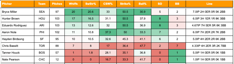 1. Bryce Miller (SEA): 20 Whiffs (97 Pitches)