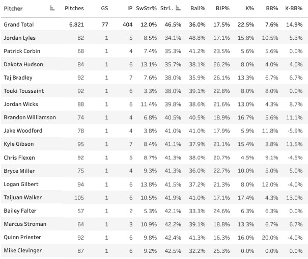 4. Bryan Woo (SEA): 54.3 Strike%, 34.6 Ball%