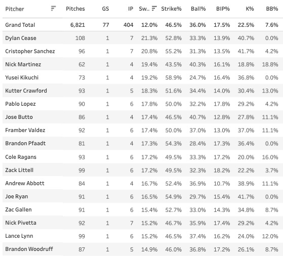1. Cristopher Sanchez (PHI): 20 Whiffs (96 Pitches)