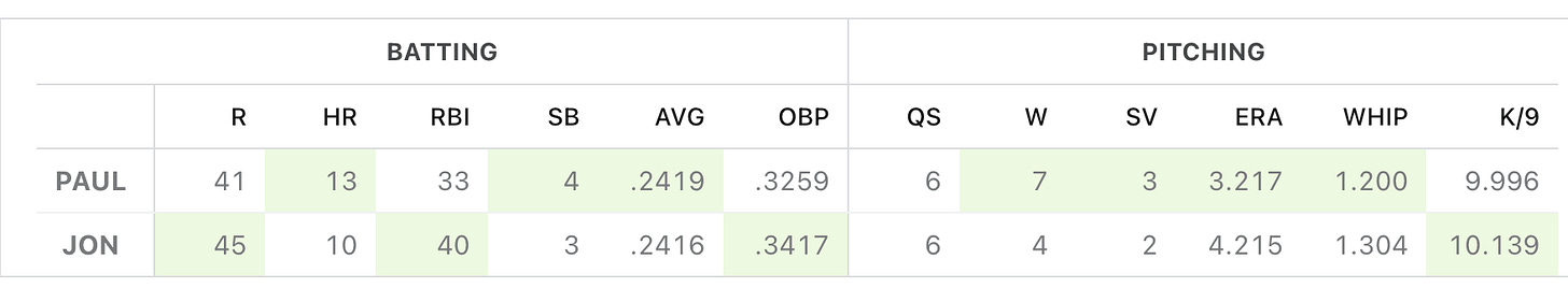 Batting average was decided by 0.0003 and most of the other categories were pretty close as well, but the breaks didn’t go my way.