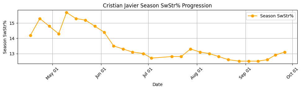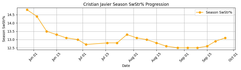 Cristian Javier had a 17.6% SwStr%, so that trend has continued. Here’s how his season SwStr% has looked after every outing this year: