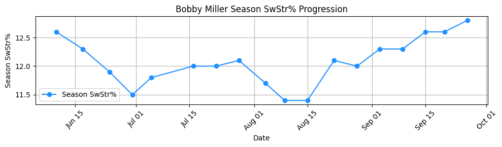 The other problem with getting hung up on SwStr% is that you’re not looking at the actual result, which is a problem! He has been throwing 4-5 innings lately and still giving up some runs, so it’s not like he’s been an ace recently or anything - but yeah it’s really good for him to see the whiffs returning.