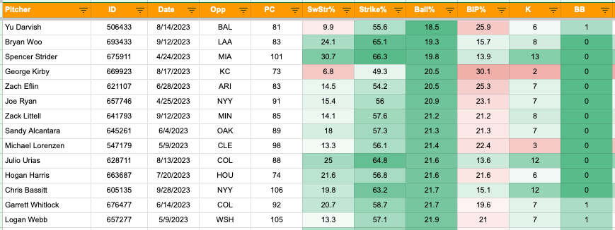 Spencer Strider - 77 TBF, 32.4% CSW%