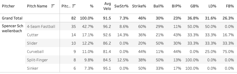 Him throwing 95 pitches right out of the gate is a good sign. Here’s the pitch mix: