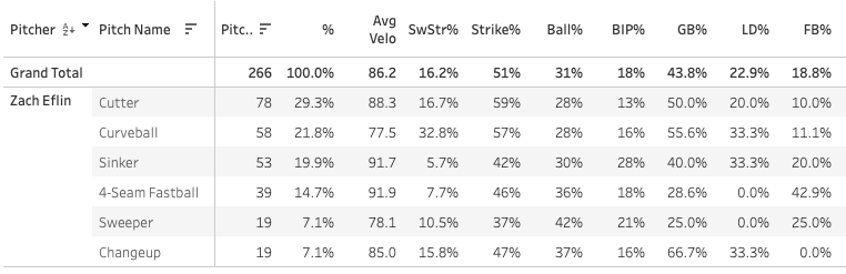2. Zach Eflin (BAL): 56.5 Strike%, 25.9 Ball%