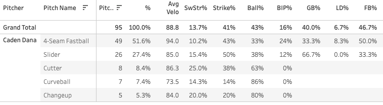6. Caden Dana (LAA): 13 Whiffs (95 Pitches)