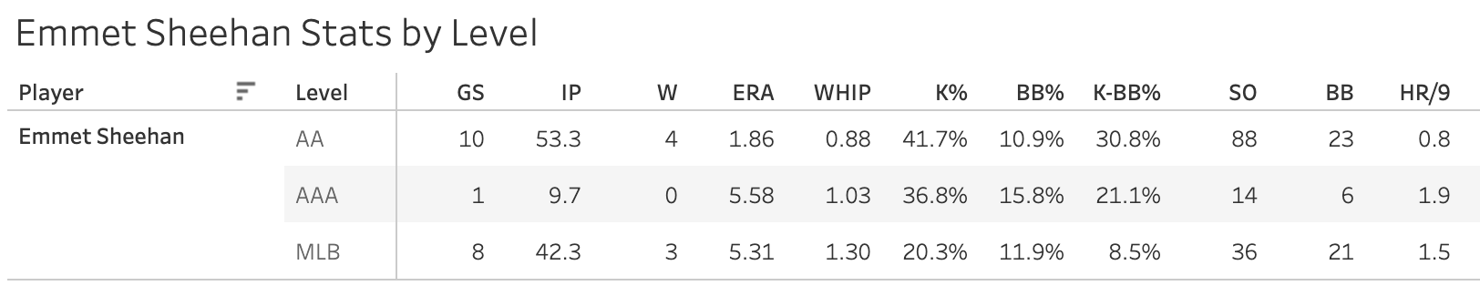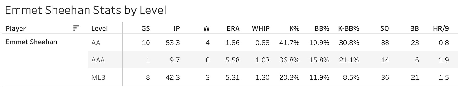 3. Emmet Sheehan (LAD): 52.6 Strike%, 38.2 Ball%