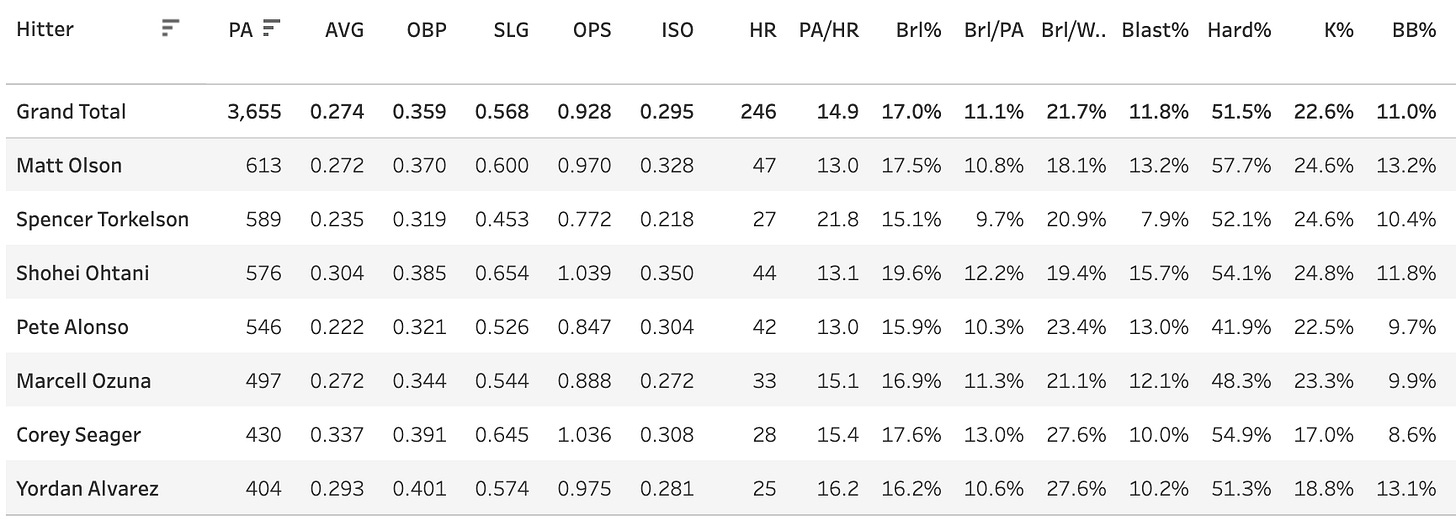 Aaron Judge - 80 PA, 42 BIP, 11 Brls, 26.2 Brl%