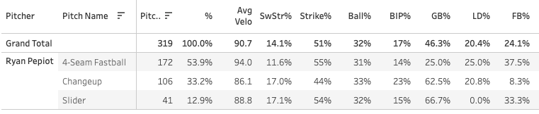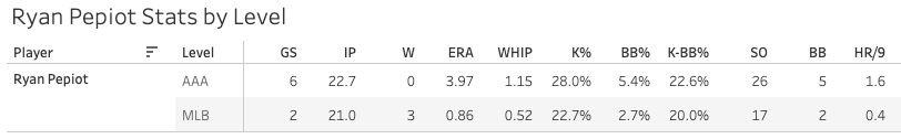 Let’s check the season on Ryan Pepiot, who had a big start yesterday and really showed Lance Lynn and Clayton Kershaw how it’s done.