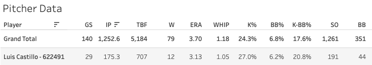 2. Luis Castillo (SEA): 51.9 Strike%, 36.1 Ball%