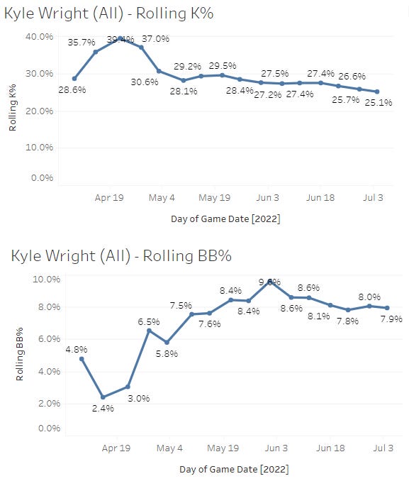 Kyle Wright's CU usage (42.9%) up 10.7 points