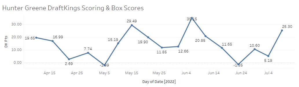 Hunter Greene had a good one. Man, have I been right about that guy! I said weeks ago that it would be a wild ride with this guy with high highs and low lows.