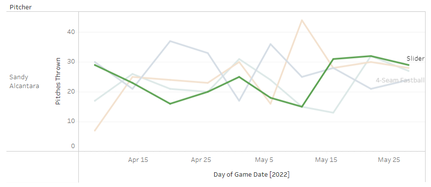 Over these last two starts, he has used his slider a bit more, which explains a bit of the increased whiff rate.