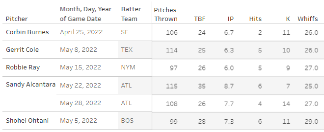 Robbie Ray - 98 TBF, 32.9% CSW%