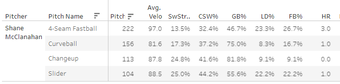 Shane McClanahan - 93 TBF, 36.5% CSW%