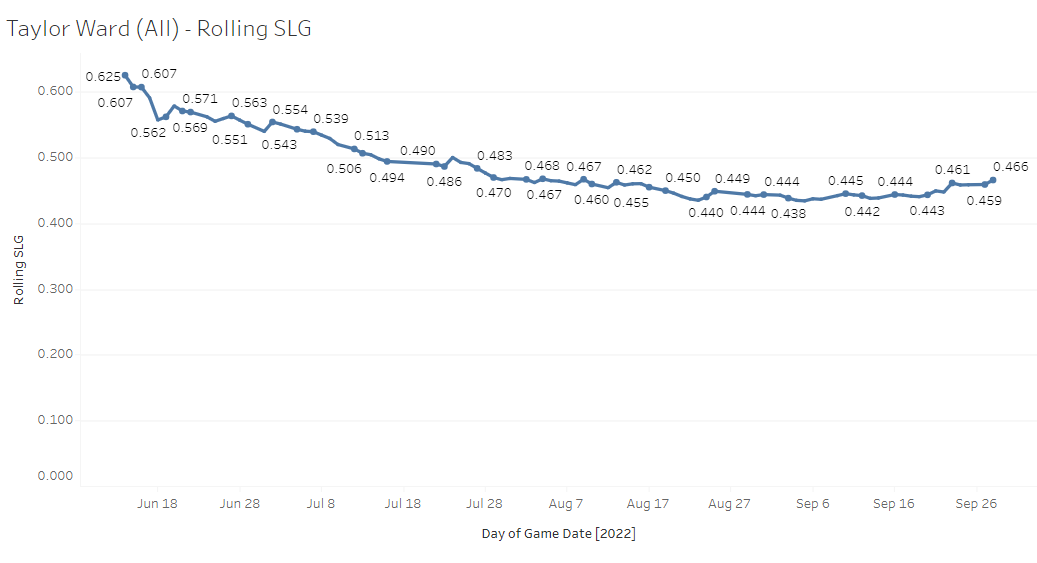 Taylor Ward - 0.471 xwOBA, 17.5% Brl%, 79.6% Contact%, 15.8% Chase%, 17.3% K%