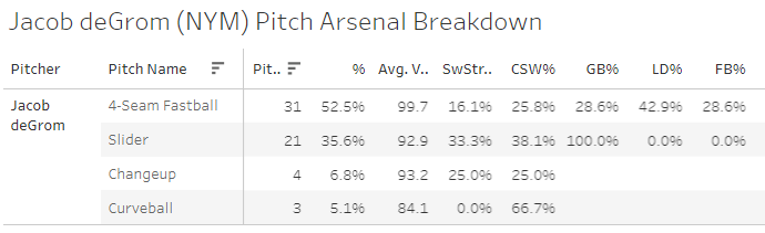 deGrom came out of the gate just fine, as we expected, here’s what it looked like: