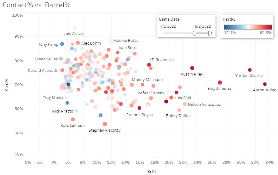 If we push back to hitters with barrel rates above 15% and contact rates above 70% since July 1st: