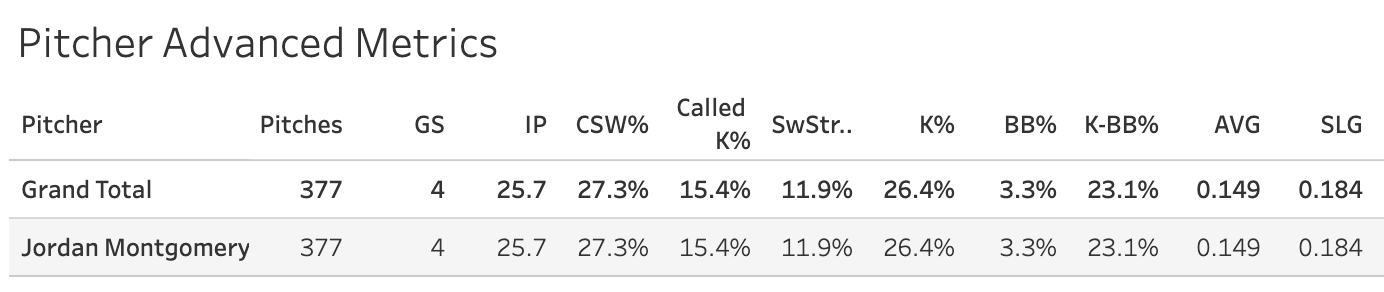 4. Jordan Montgomery (STL): 14.1 SwStr%, 29.3 CSW%