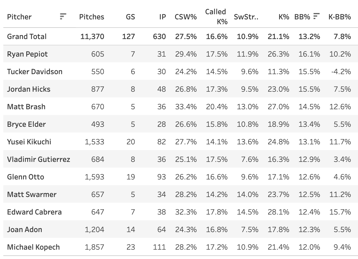 1. Edward Cabrera (MIA): 14.9 SwStr%, 34.7 CSW%