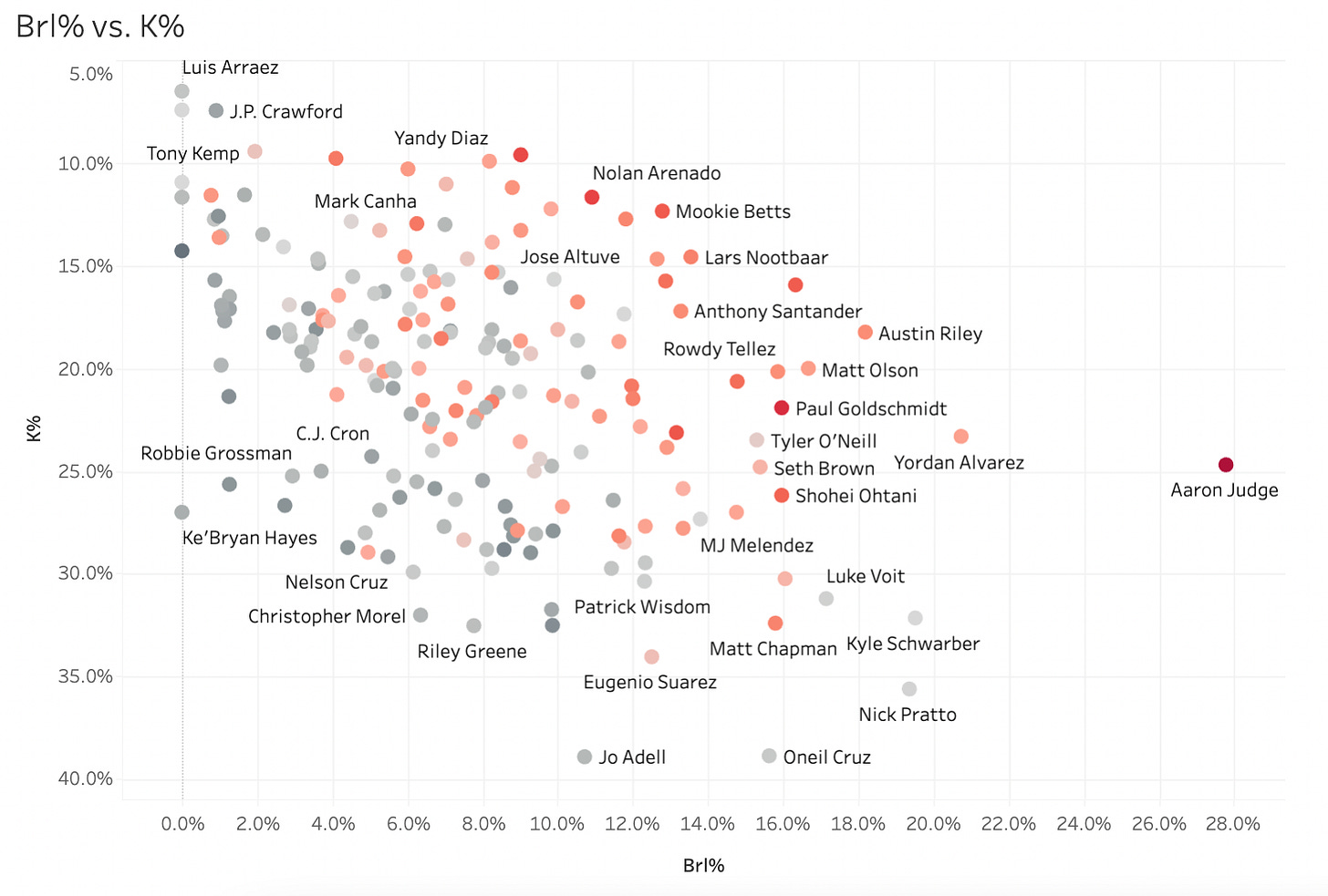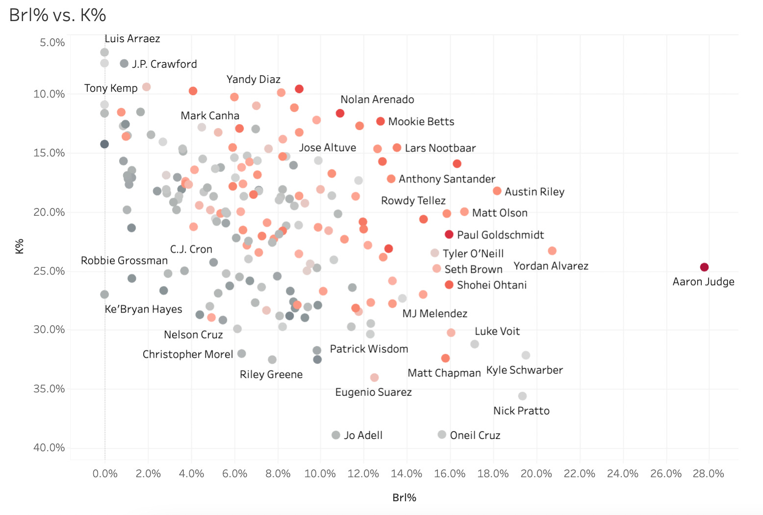 I don’t have much else to say, but it’s a good time to check on the K% vs. Brl% scatter plot - we’re looking just after the All-Star Break