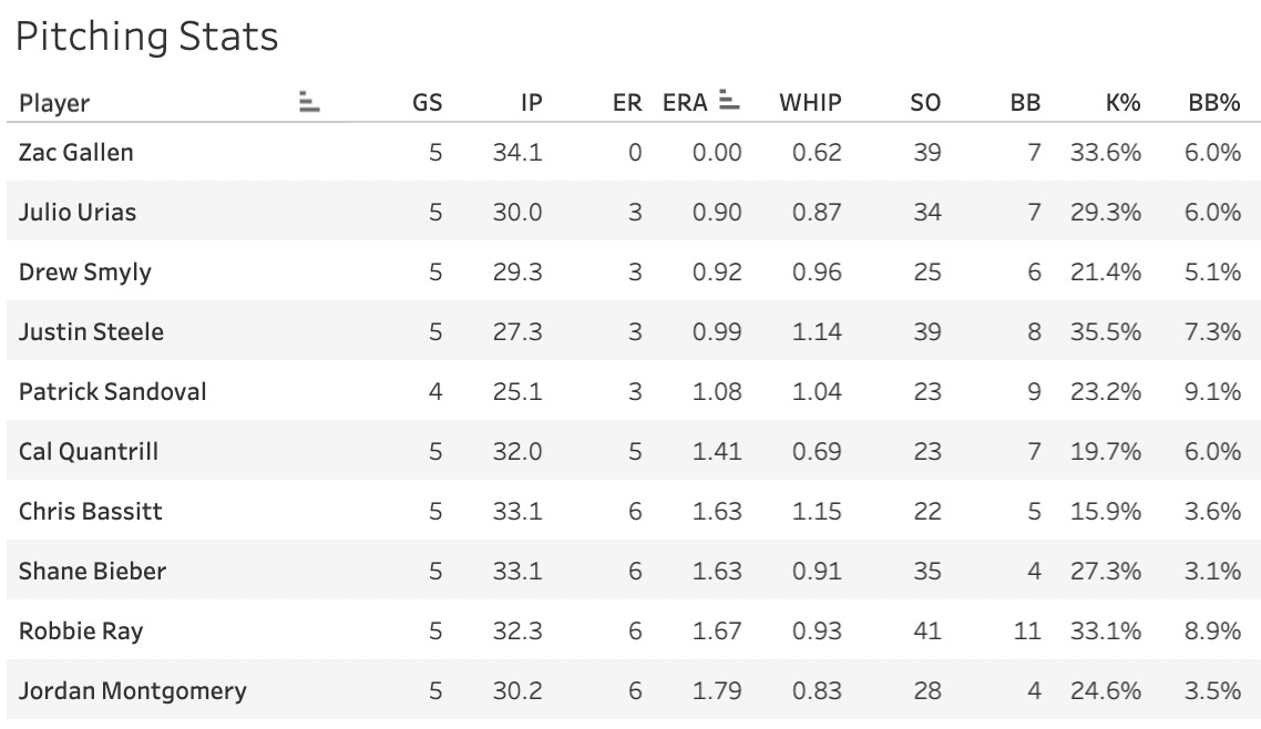 Gallen’s scoreless inning streak is now up to 34.1 innings. He hasn’t given up a run since August 2nd. I love being in the business of picking very specific date ranges and then showing stats from them, so here are the league’s ERA leaders since August 3rd: