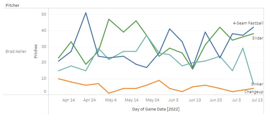 Brad Keller's FF usage (46.2%) up 13.8 points