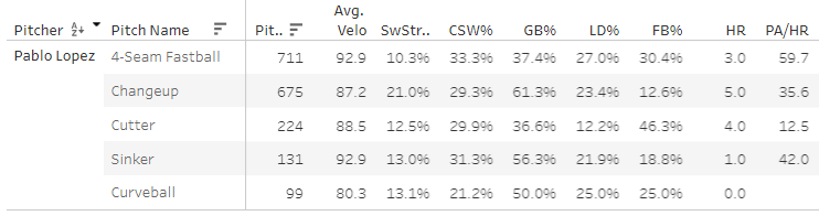 2. Pablo Lopez (MIA): 19.1 SwStr%, 41.5 CSW%