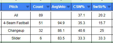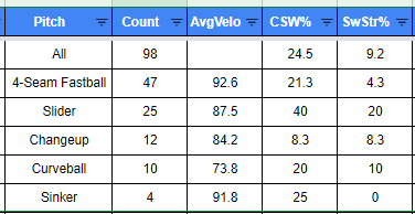 That’s a fantastic day on the four-seamer and changeup. A 15.7% SwStr% on a fastball is great, and the changeup looked like it did last year. I don’t know how long this will stick around, but he should finish the season with matchups against the Nationals (twice) and Brewers, which are elite matchups for a lefty. I’d consider adding him if he’s available.