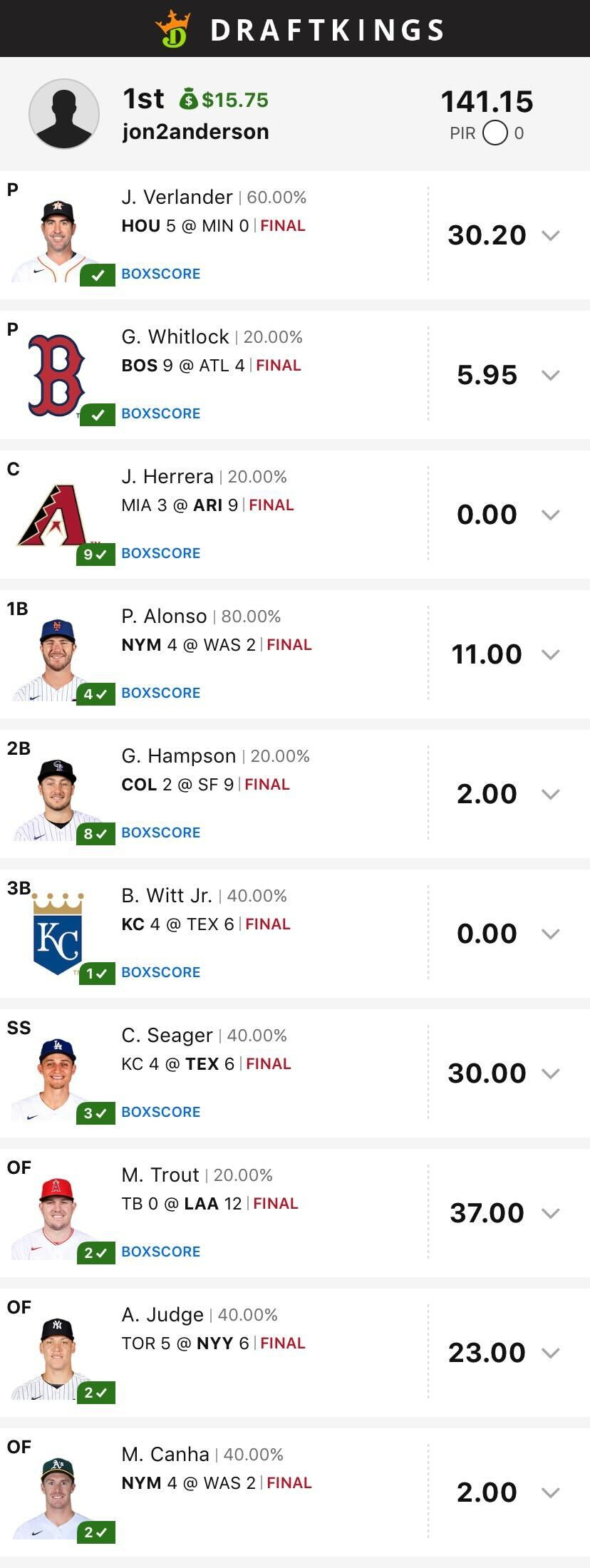10. Max Scherzer (NYM) - 6.0 GS - 47.79 JA Points