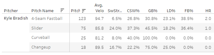 1. Kyle Bradish (BAL): 15.6 SwStr%, 41.1 CSW%