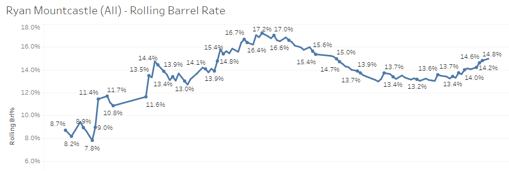 Ryan Mountcastle - 77 PA, 51 BIP, 13 Brls, 25.5 Brl%