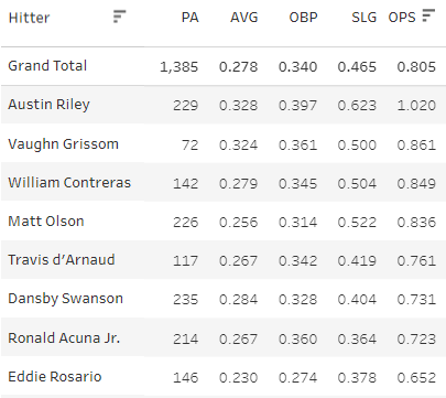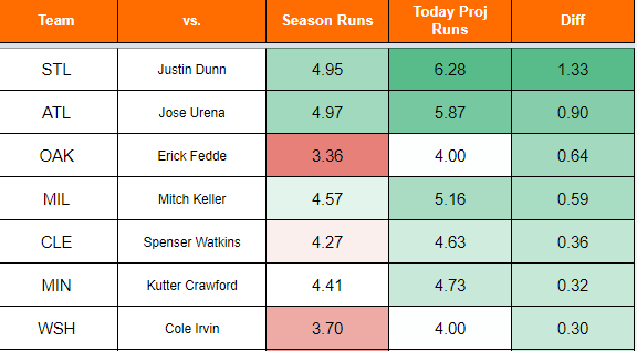 Bit of a shame that the Cardinals aren’t on the main slate, which makes the Braves the go-to offense here. Brewers also getting a decent bump, although I’m way less gung-ho on them since Keller has shown some competency recently and they may be without Rowdy Tellez tonight. So we’re really just focused on the Braves.